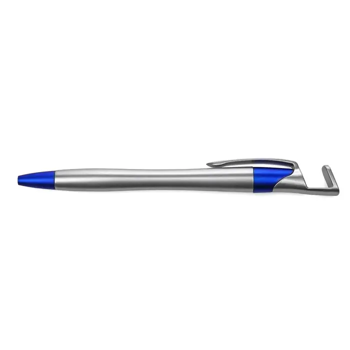 Bolígrafo de cuerpo metálico en aluminio con detalles en negro y plata. Cuenta con tinta azul y apertura con medio