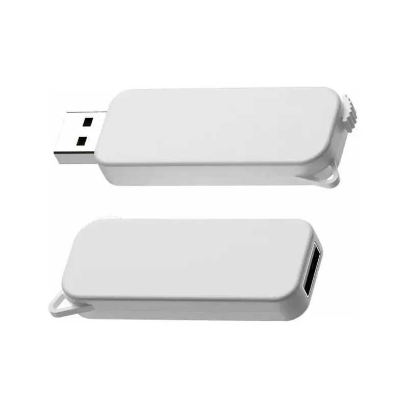 Pen Drive retráctil de 8GB con USB2.0 y memoria GradoA de marcas líderes. Su diseño plegable protege el conector y cuenta con un agujero para engancharlo donde quieras. Compacto, seguro y fácil de transportar