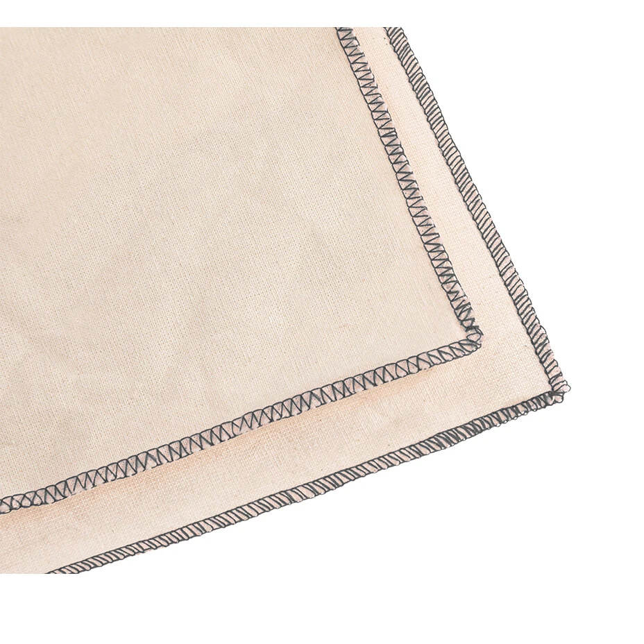 Lona de lienzo 100% algodón color crudo con bordes realizados en overlock de color negro. Contiene su propia funda cosida